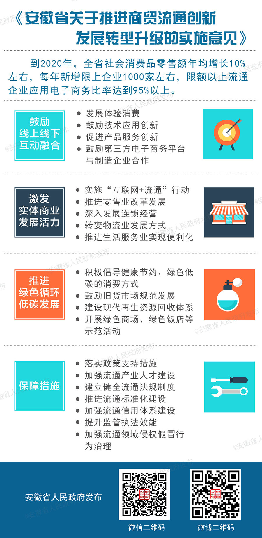近日,省人民政府印发了《安徽省人民政府关于推进商贸流通创新发展转型升级的实施意见》(以下简称《实施意见》)。现将《实施意见》的主要内容解读如下: