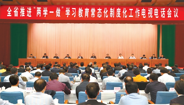 4月20日,全省推进“两学一做”学习教育常态化制度化工作电视电话会议在合肥召开。徐国康/摄